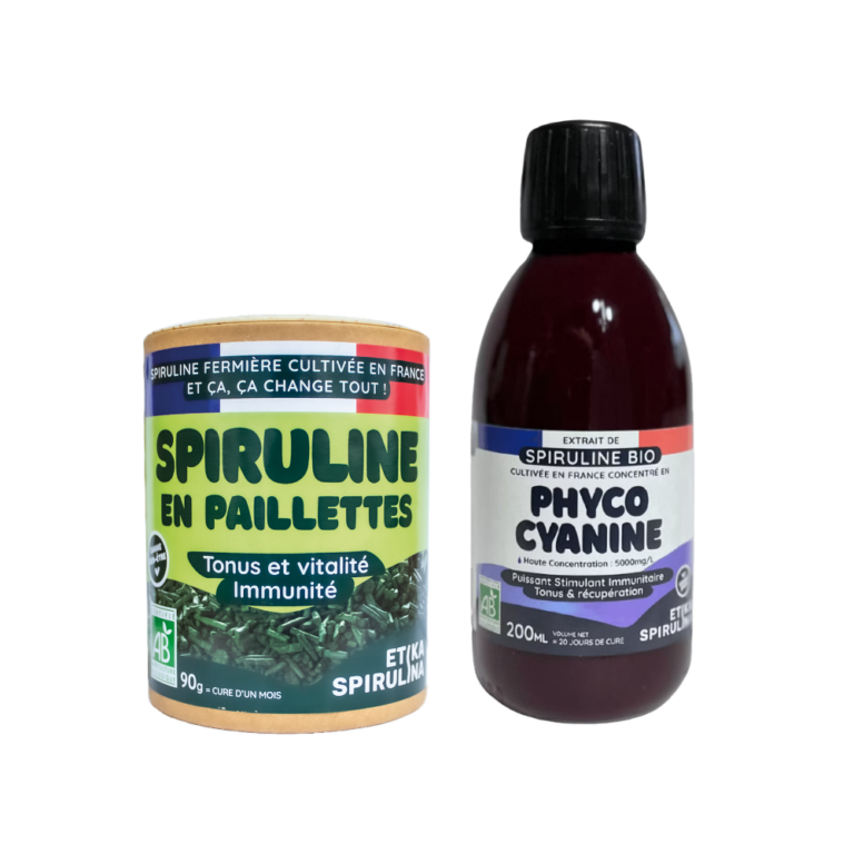 Pack Tonus & Immunité avec spiruline bio en comprimés 90g et flacon de phycocyanine bio 200 ml