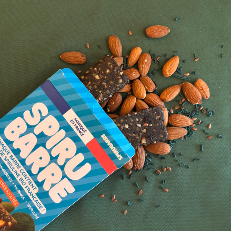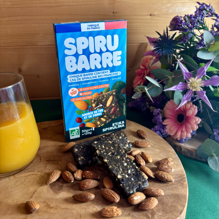 Chaque barre contient 1,5g de spiruline bio française, soit la portion journalière recommandée !
