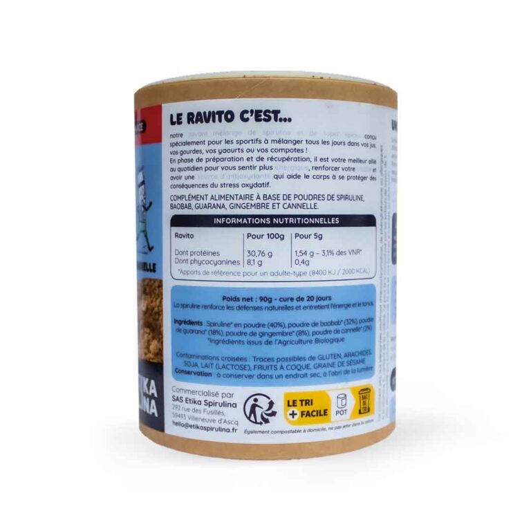 - Un goรปt rรฉconfortant : fini le goรปt parfois clivant de la spiruline ! Avec la Poudre Ravito, place ร une saveur douce et รฉpicรฉe, lรฉgรจrement relevรฉe, qui sรฉduit mรชme les plus sceptiques.