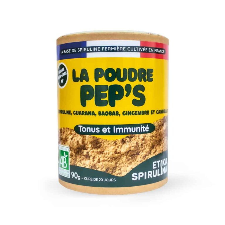 La poudre Pep’s est un mélange de spiruline et de super épices à intégrer au quotidien dans vos jus, yaourts ou compotes. Elle allie l’utile à l’agréable : aide à renforcer l’immunité, soutient l’énergie et aide à maintenir un taux de glycémie correct.
